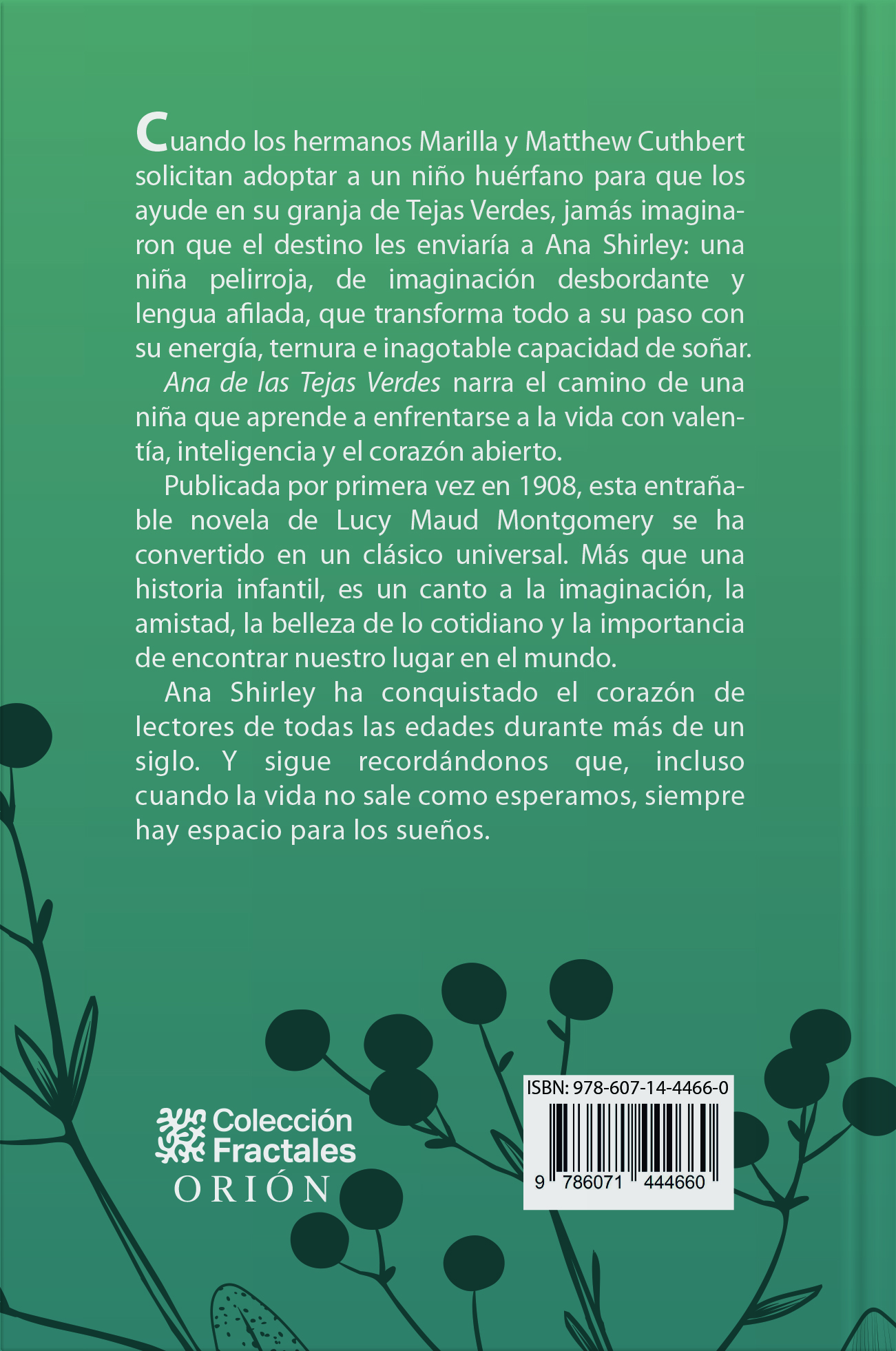 Publicada por primera vez en 1908, esta entrañable novela de Lucy Maud Montgomery se ha convertido en un clásico universal. Más que una historia infantil, es un canto a la imaginación, la amistad, la belleza de lo cotidiano y la importancia de encontrar nuestro lugar en el mundo.