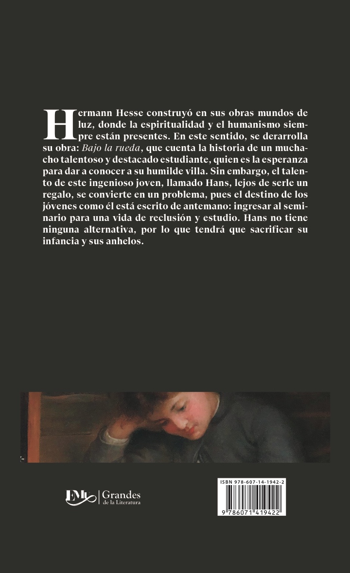 Hesse construyó en sus obras mundos de luz, llenos de espiritualidad y humanismo. Bajo la rueda cuenta la historia de un muchacho talentoso y excelente estudiante que es la esperanza para dar renombre a su humilde villa Selva Negra.