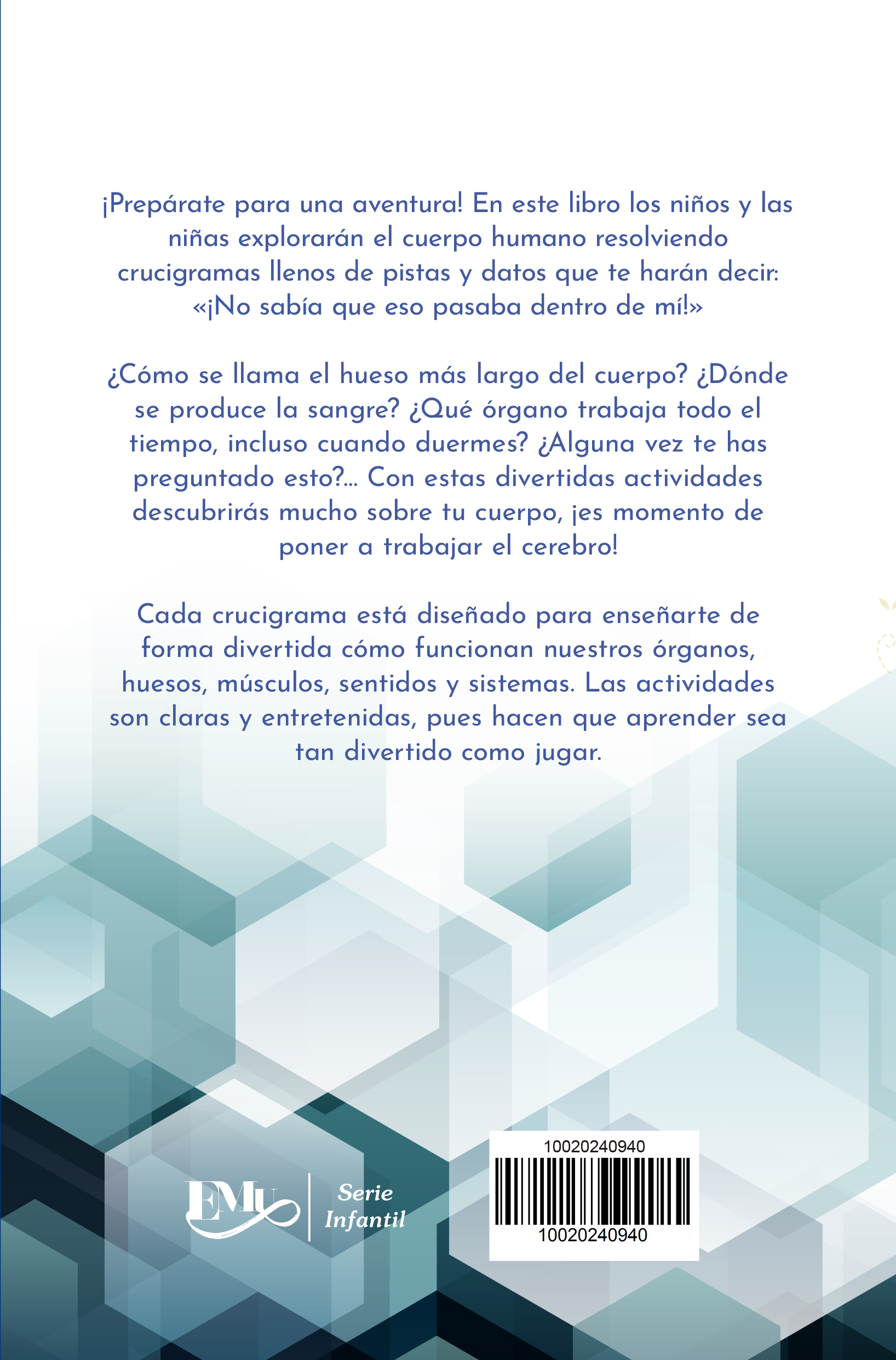 En este libro los niños y las niñas explorarán el cuerpo humano resolviendo crucigramas llenos de pistas y datos que te harán decir: “¡No sabía que eso pasaba dentro de mí!”