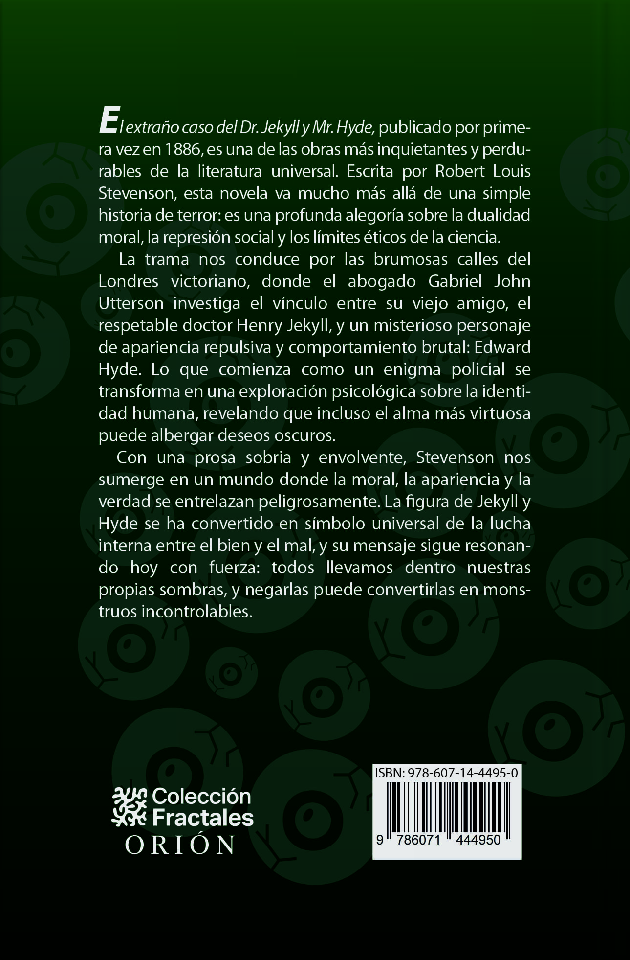 Lo que comienza como un enigma policial se transforma en una exploración psicológica sobre la identidad humana, revelando que incluso el alma más virtuosa puede albergar deseos oscuros. Con una prosa sobria y envolvente, Stevenson nos sumerge en un mundo donde la moral, la apariencia y la verdad se entrelazan peligrosamente.