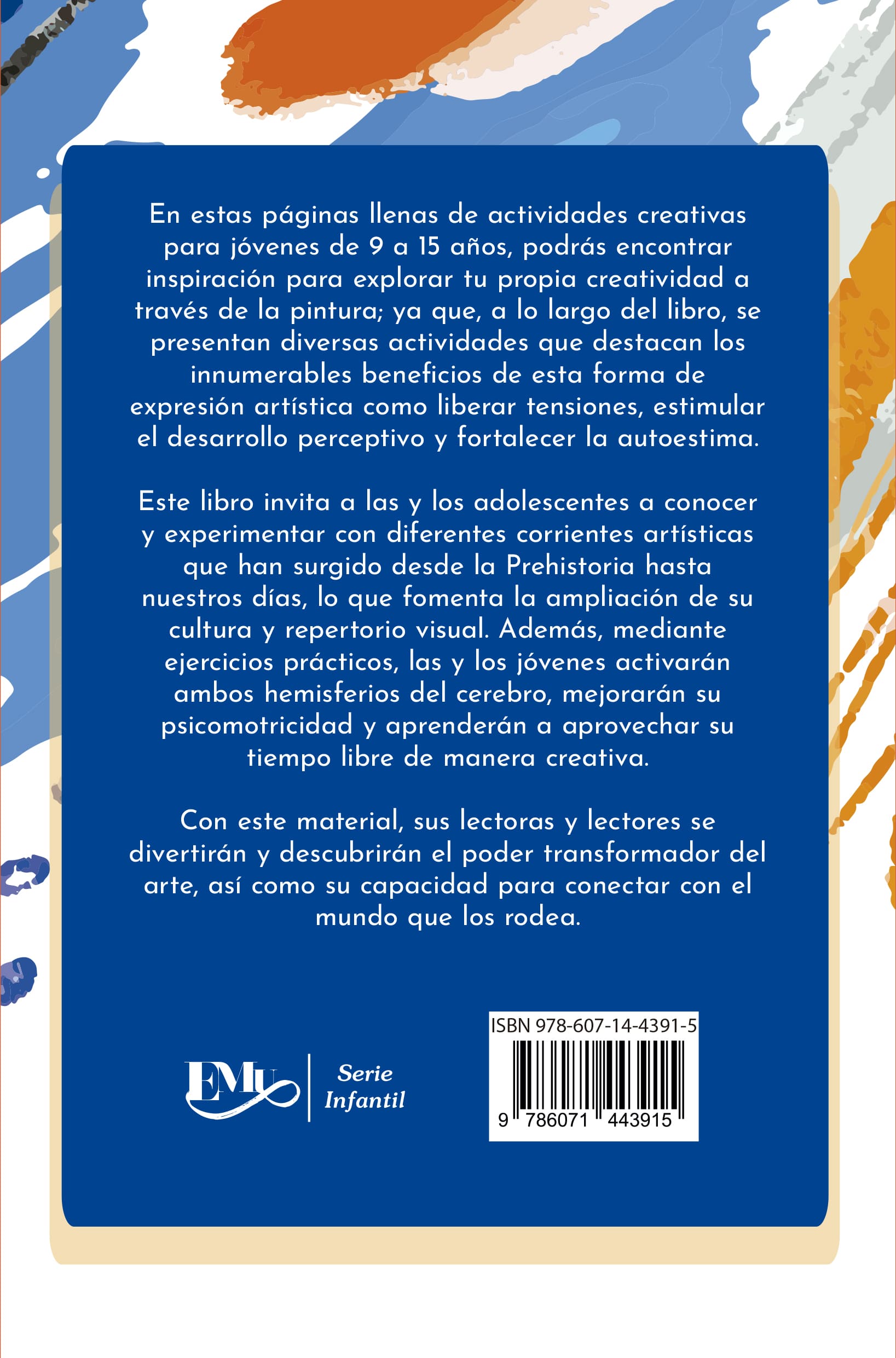 En estas páginas llenas de actividades creativas para jóvenes de 9 a 15 años, podrás encontrar inspiración para explorar tu propia creatividad a través de la pintura; ya que, a lo largo del libro, se presentan diversas actividades que destacan los innumerables beneficios de esta forma de expresión artística como liberar tensiones, estimular el desarrollo perceptivo y fortalecer la autoestima.