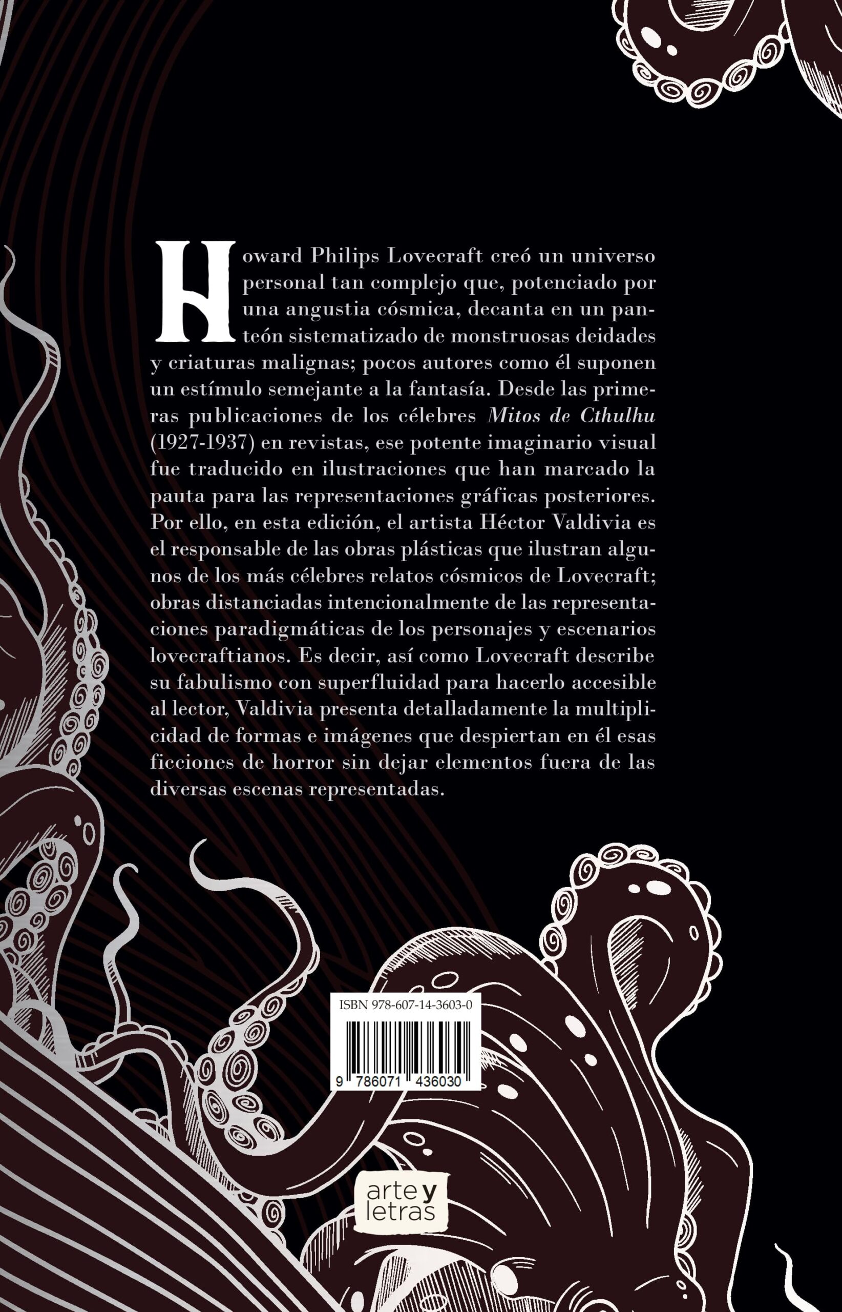 Por ello, en esta edición, el artista Héctor Valdivia es el responsable de las obras plásticas que ilustran algunos de los más célebres relatos cósmicos de Lovecraft; obras distanciadas intencionalmente de las representaciones paradigmáticas de los personajes y escenarios lovecrafianos, es decir, así como Lovecraft describe su fabulismo con superfluidad para hacerlo accesible al lector, Valdivia presenta detalladamente la multiplicidad de formas e imágenes que despiertan en él esas ficciones de horror sin dejar elementos fuera de las diversas escenas representadas.