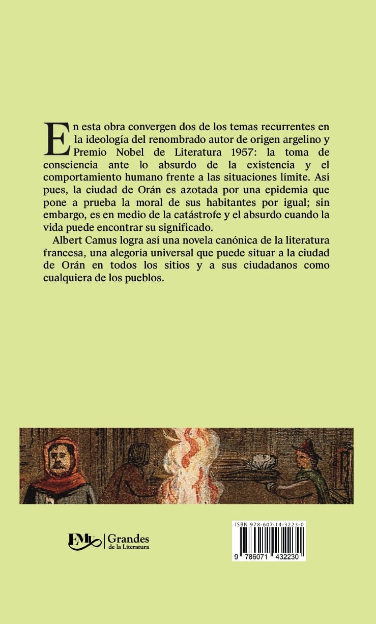 Albert Camus logra una novela canónica de la literatura francesa, una alegoría universal que puede situar a la ciudad de Orán en todos los sitios y a sus ciudadanos como cualquiera de los pueblos.