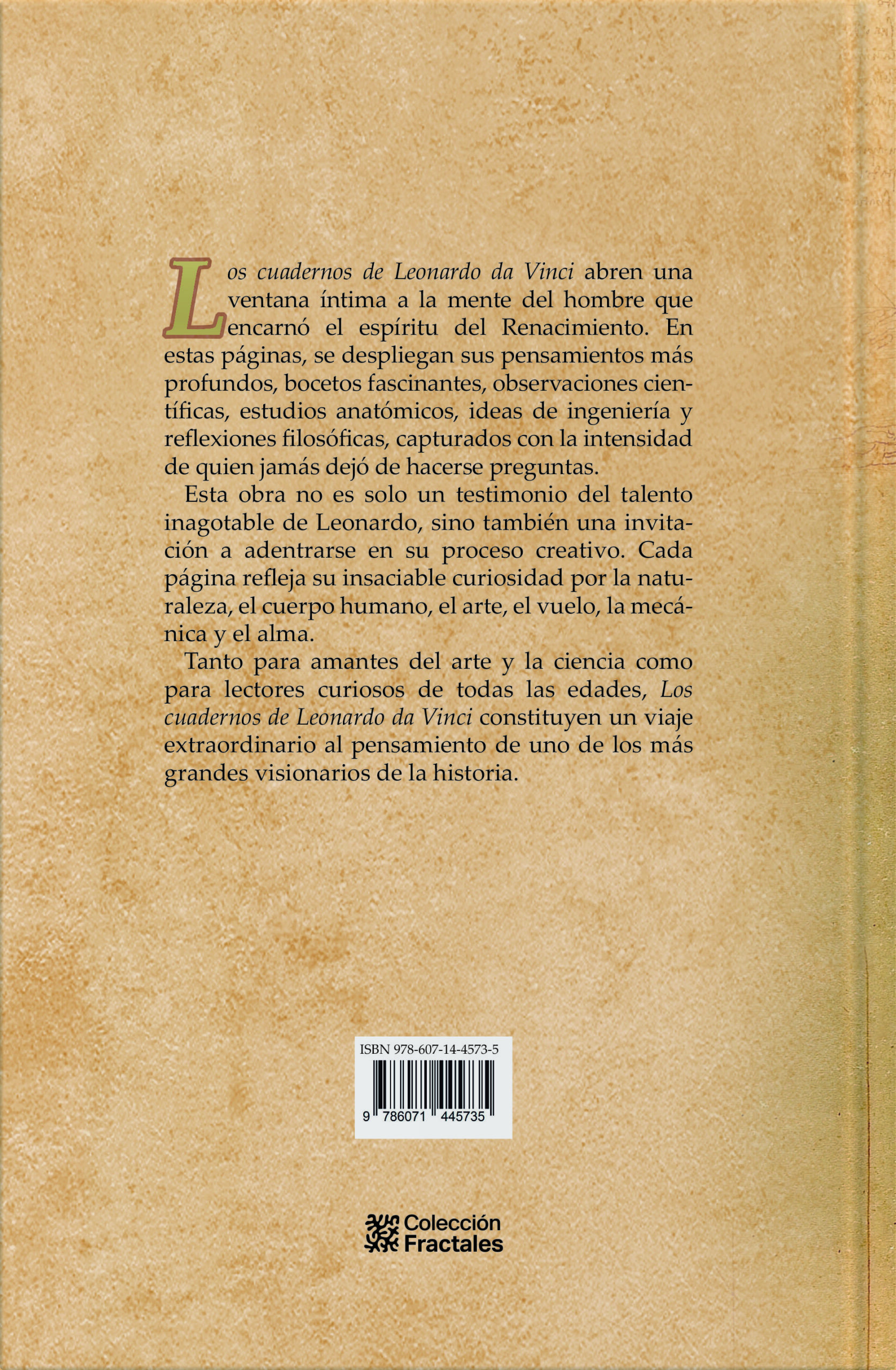 Tanto para amantes del arte y la ciencia como para lectores curiosos de todas las edades, Los cuadernos de Leonardo da Vinci constituyen un viaje extraordinario al pensamiento de uno de los más grandes visionarios de la historia.