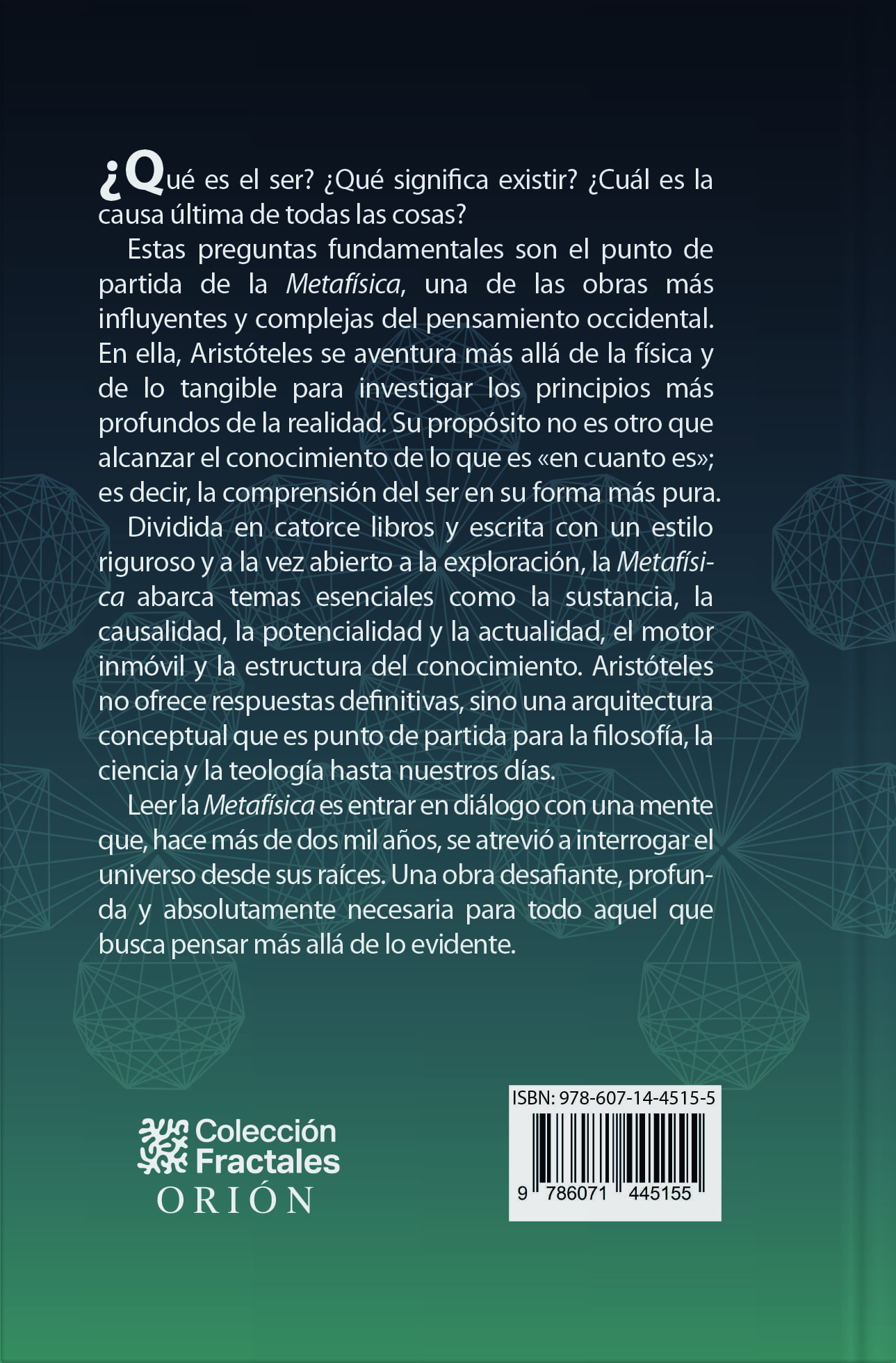 Estas preguntas fundamentales son el punto de partida de la Metafísica, una de las obras más influyentes y complejas del pensamiento occidental.