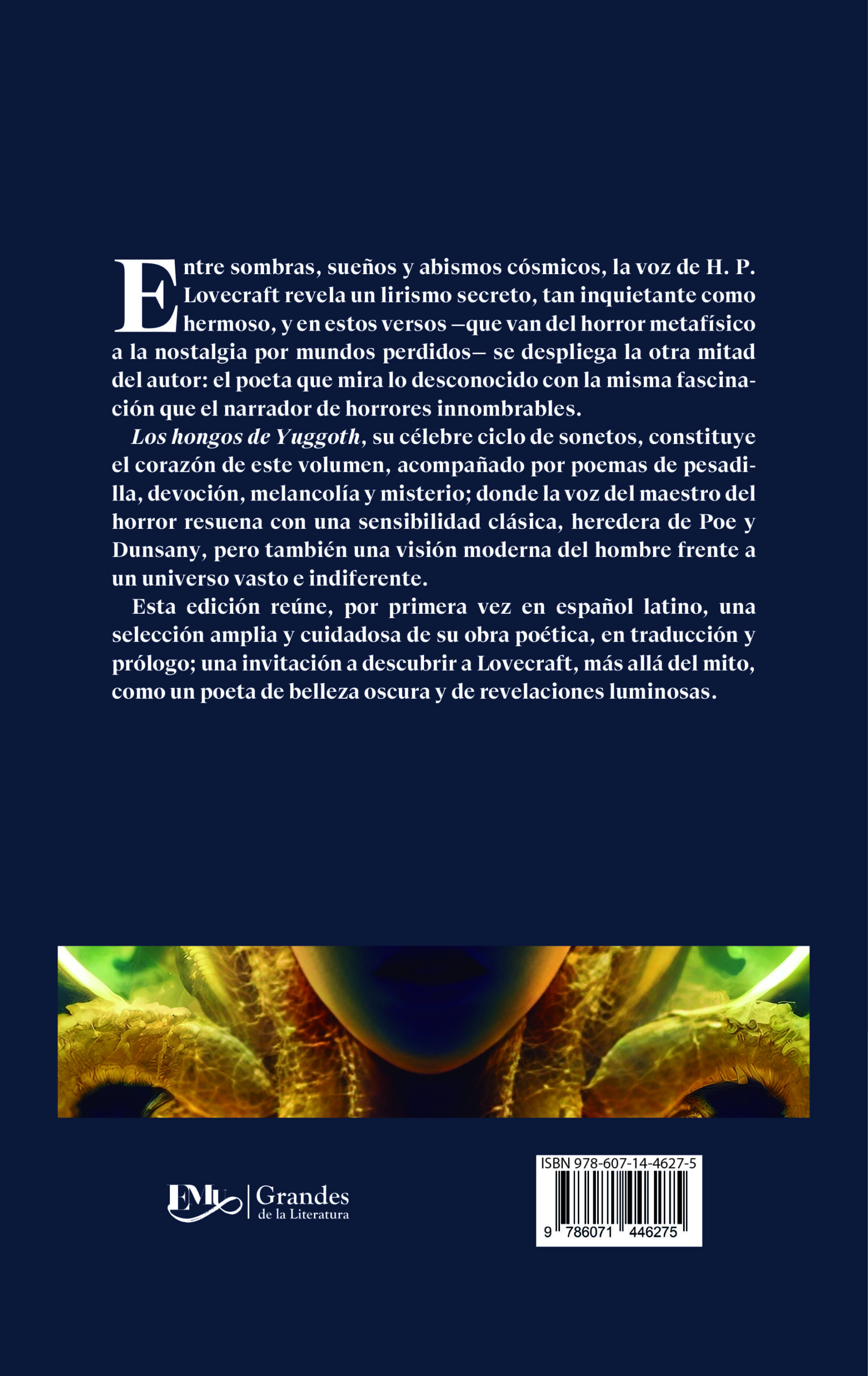 Esta edición reúne, por primera vez en español latino, una selección amplia y cuidadosa de su obra poética, en traducción y prólogo; una invitación a descubrir a Lovecraft, más allá del mito, como un poeta de belleza oscura y de revelaciones luminosas.
